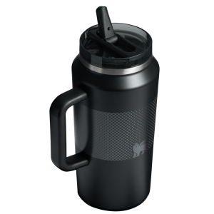 Classic colors feature fresh graphics with a soft texture on the handle of this insulated large water bottle and two-tone lid. Your water stays ice cold for hours. thanks to double-wall vacuum insulation. This leak proof tumbler is ready to grab and go by the comfort-grip handle.