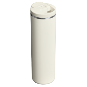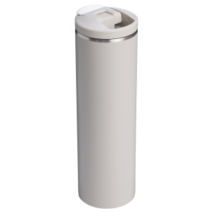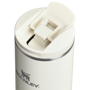 The 20-ounce Transit Flip Top Mug has premium AeroLightâ„¢ technology that makes it significantly lighter than standard stainless steel. Featherweight spun-steel with vacuum insulation keeps your drink at the right temperature for hours. Matching soft silicone at the lid tab and footpad makes opening. closing and set downs quieter.Â